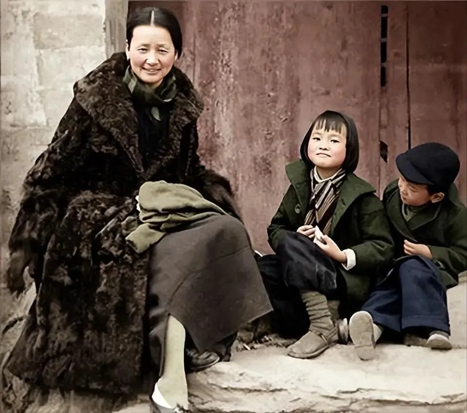 这张老照片里的正是林徽因,以及她的女儿梁再冰、儿子梁从诫,拍摄时间大概在1935-1936年前后。