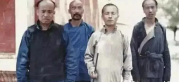 图中这几位穿着素布长衫的男子叫街面上的普通人,衣领边上有磨起的毛边,袖口靠线头拉住,颜色是深蓝灰黑一片,站在墙根下肩背有点塌,手上握着的不是权柄,是一日三餐的算计,皮肤偏白却不透亮,像久不见太阳的面色,额头油光是汗干了又起的印子,脚下的布鞋扁平,鞋面被补丁压住原来的纹路。