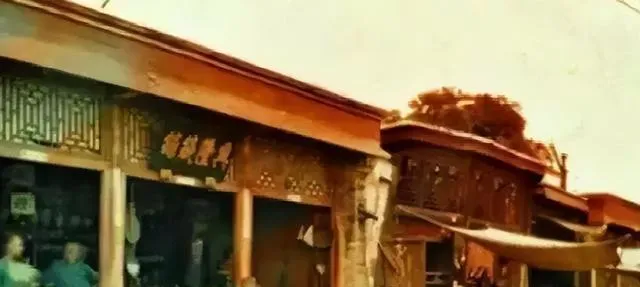 这条巷口的铺面叫清末的集市,雕花的木窗格子还在,牌匾的金字掉了漆,檐下挂着一条遮阳的布篷,颜色被太阳烤成黄中带赤,门里坐着两个人,像是掌柜和伙计,前头没什么行人,地上灰尘薄薄一层,脚一踩就能起烟,侧面挂着一串小件货,铜哨子木梳子之类的,风一过轻轻晃。