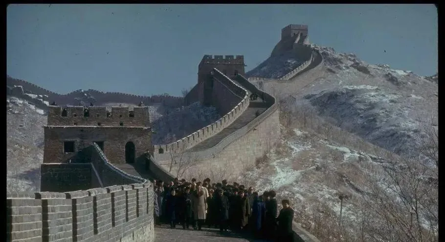 图里这段叫居庸关城道,墙砖冷硬,城台叠起,坡上薄雪一层,人群挤在风口处,帽子围巾都紧了紧,脚下的青砖被鞋底磨得亮,年轻人拍胸脯说爬得不累,转头就喘粗气,奶奶笑他虚,拍一把背说再上两台就到烽火口了。