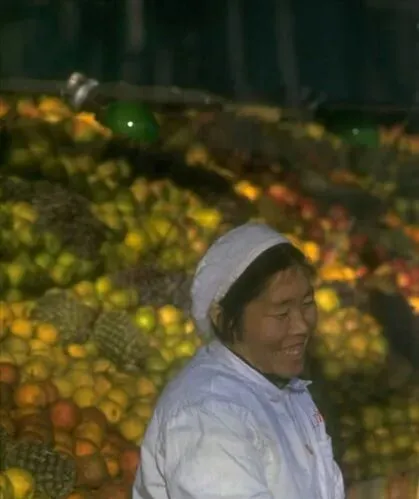这堆五颜六色的叫苹果山,再挤几颗柑橘和菠萝,摊后站的是供销社大姐,白头巾一扎,笑得眼睛眯成缝,秤盘叮当一响,手里一抖就是半斤,奶奶说那会儿逢年节凑票买点好果子,回家摆在缸沿上,看着都香。