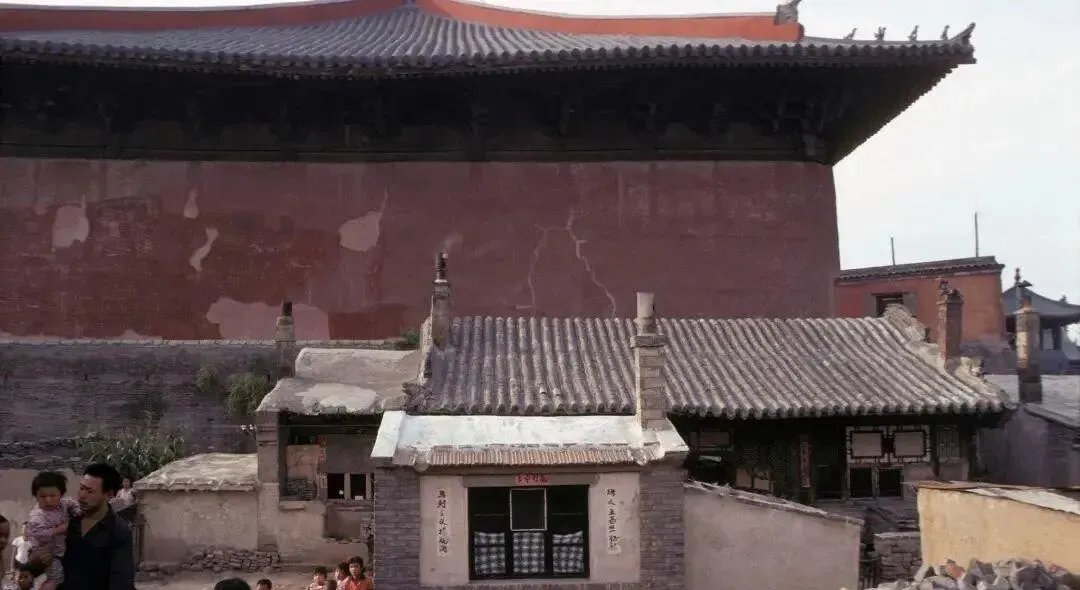 这片灰墙灰瓦叫城根合院,矮屋贴着大殿后墙,烟囱细细高高的,窗上糯米纸糊得严实,门楣写着“文明户”,炕沿边堆着柴,墙缝里冒着风,奶奶说晚上屋里点个煤油灯,亮是亮,熏得人眼睛直流泪,现在想想,还是电灯好。