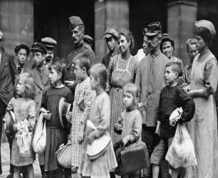 这群人手里抱着包袱和小皮箱,帽子压得低,孩子东张西望不敢吭声,男人脸上胡茬子都来不及刮干净,照片边角有点糊,像风一吹就要散的队伍,外面传来消息要去登记换粮,大家挤在门口等一张条子,小时候我跟着大人排过购粮的队,也学会了用手护着口袋口,怕把证给弄丢了。