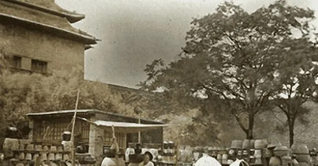 照片里一处城门外的市集,箩筐瓮罐叠成墙,树荫底下摊主支着小棚,案板上摆满了锅碗,风从土路上刮起来,碎草贴在裤腿上不肯掉,小时候跟着外婆赶集,她把铜钱串成一串放袖口里,买完菜再抖出来,叮当一响,回头路上总要在油饼摊前停一回。