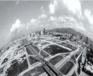 这张广角镜头把地面拉得特别阔,路修好了,楼还没起,像给未来画好了格子等着一栋栋填进去,九十年代的气味就是灰土里带着新沥青的热,风里夹着响亮的口号声,我们家那会儿往返亲戚家要穿半城荒地,现在抬头一圈都是玻璃幕墙,脚步不自觉就要快两拍。
