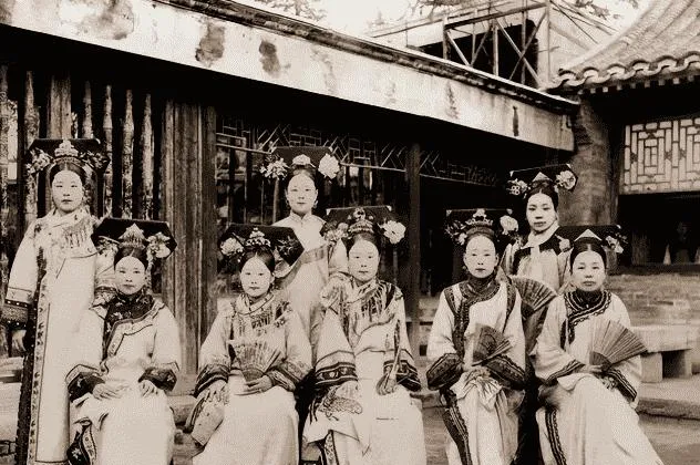 这张合影里的仕女头上戴着繁复的花钿,身上衣料厚重,坐的站的排成扇形,后檐下的窗棂纹样细得像一张网,扇面一打开,手腕微微一斜,仪态就到位了,外婆笑我不识规矩,说这扇不能随便抖,抖急了就显得心慌,那会儿讲的就是收放两个字。
