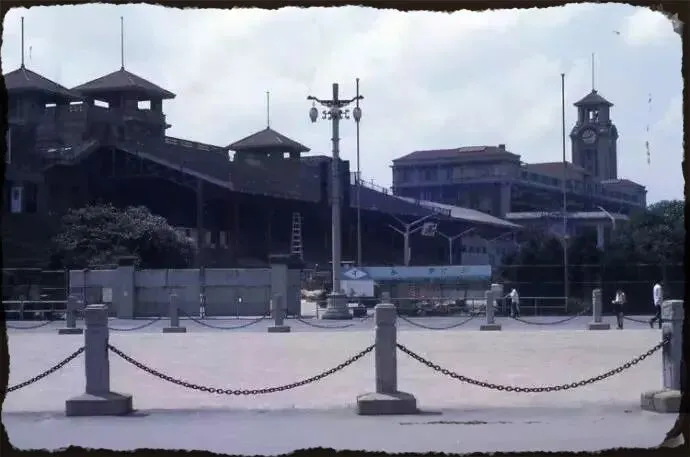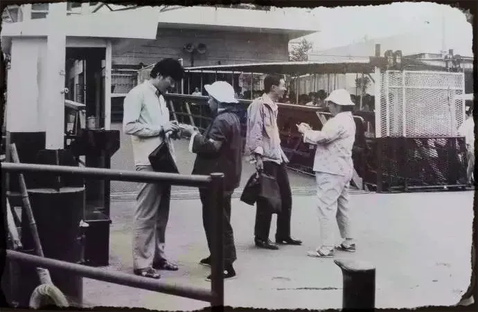 1988年东门轮渡站的工作人员正在对乱扔杂物者罚款。