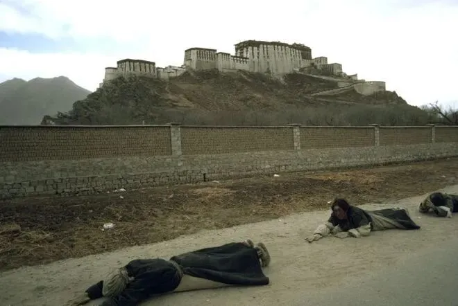 信徒们在布达拉宫周围磕长头,这是藏传佛教信仰者最至诚的礼佛方式之一。