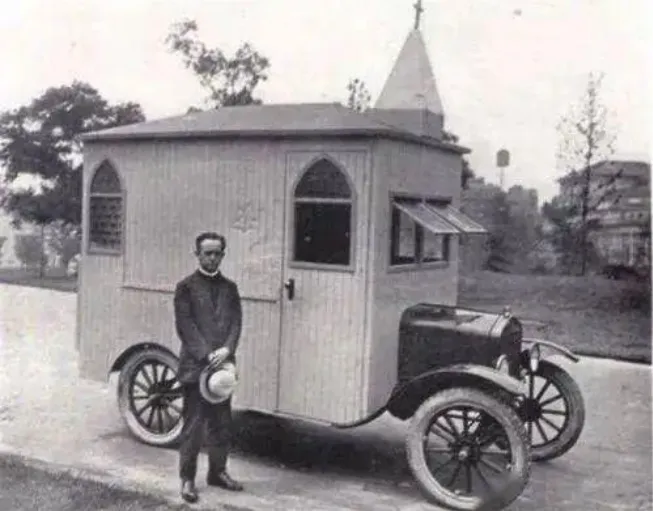 1.1923年,建在汽车上的教堂。