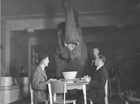 12.1939年,人们跟大象一起喝茶,看看大象喝茶的容器有多大。