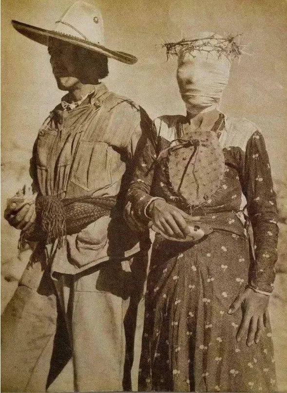 13.1940年,前去参加宴会的一对墨西哥夫妇,女子的头用布包裹得很严实,很像木乃伊。