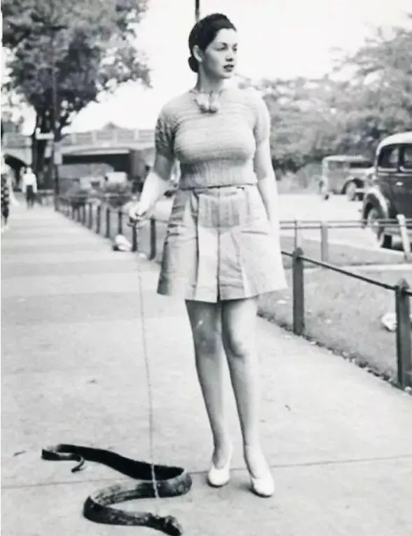 14.1930年,一位妇女正在街上溜着她的宠物蛇。