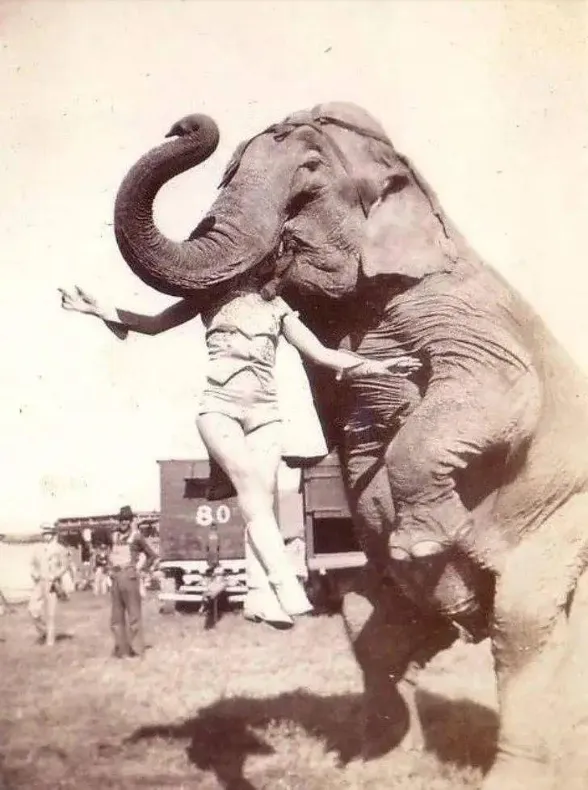 15.1937年美国,大象用嘴提起马戏表演者