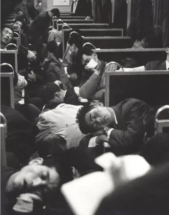 21.1964年,日本的火车上,乘客睡得前仰后合的