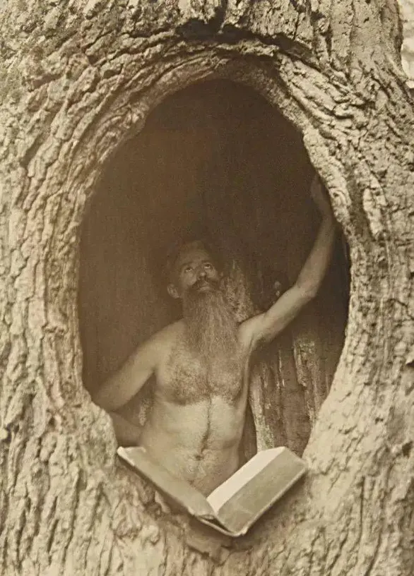 24.1900年的澳洲,在巨大的树里读书的男子