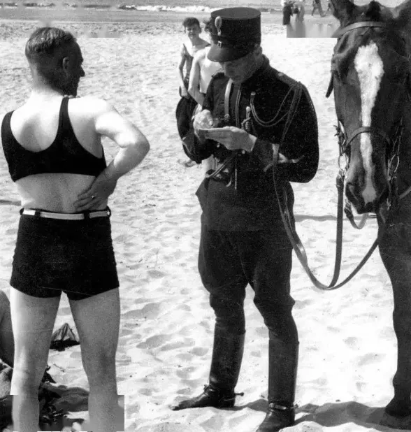 26.1931年荷兰,海滩上一名男子因穿了不合适的泳衣而被罚款