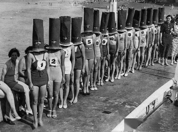 27.1936年,英国举行的最美腿比赛,女子们的头都被高高的帽子遮挡了起来