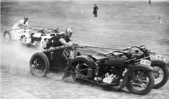 28.1936年,澳洲摩托战车比赛,开车的人像是驾驶着机械战马