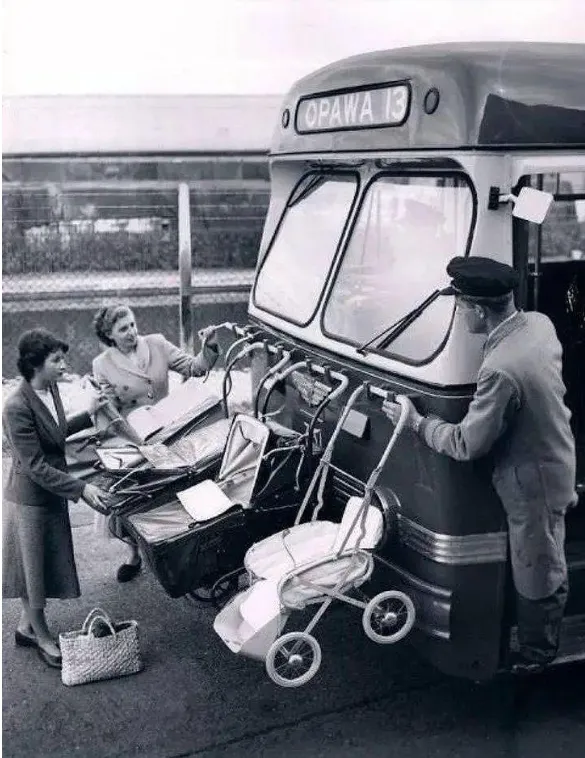 30.1955年的新西兰,婴儿车是这样放在公车上的