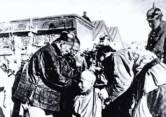 图中这阵仗叫临刑前的“理发与捆缚”,老城门口冷风直刮,粗布衣的人蹲着不敢抬眼,执事的手上绳子绕了一圈又一圈,旁边的洋兵盔上反着光,爷爷说那会儿谁要是从这口子路过,鞋跟都要轻,别让石板响一声,现在我们看照片说是历史场景,当年可真是街面上的阴影。
