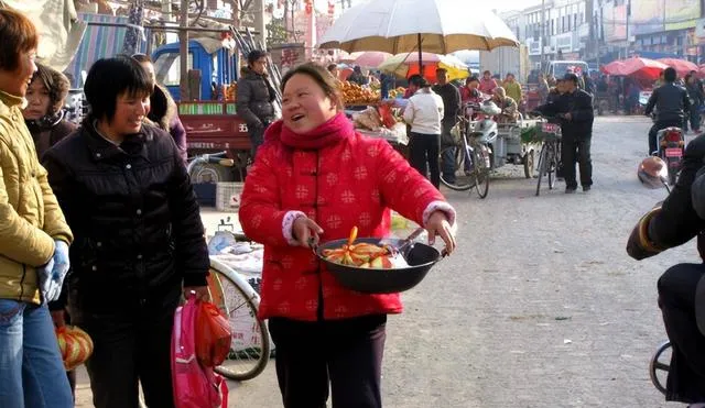 这一位端着大铁锅,笑得敞亮,锅里糖堆儿颜色艳,集市的风从摊位间钻过去,羊肉串的烟香和瓜子味混在一处,小孩攥着一枚硬币伸手就要,卖货的大妈说别急,烫手呢,小时候我跟着妈赶集,走丢了就顺着香味找她,现在超市一条龙,干净是干净,热闹可小了。