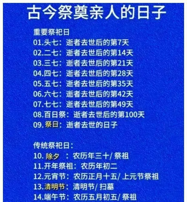 这张蓝底的表叫祭祀日单,七七四十九到百日清清楚楚列明白了,家里遇上事翻它一眼心里有数,叔叔说日子不是迷信,是给人一个收拾心绪的台阶,以前请人敲锣打鼓一路送,现在多是静静地摆束花,方式变了,念想还在。