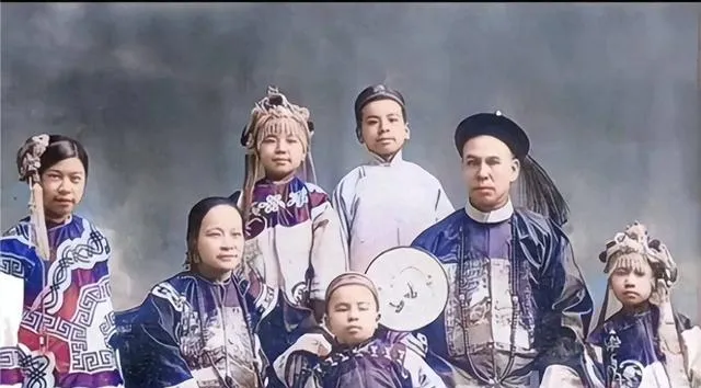 这张家族合影,团扇圆润,袍子厚实,孩子站得乖,男子额前辫根压帽檐,女子的鬓花小而密,镜头前面有人憋笑,镜头后面有人喊别眨眼,照片在木匣子里窝了许多年,拿出来颜色淡一点却更温和了,以前拍一张要商量半天,现在手机“咔嚓”一串,还真不如一张来得长久。