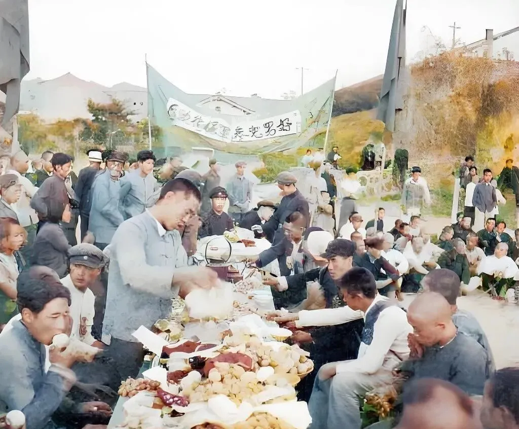 这张近些的,还是参军席,盘子里码着热乎的菜团子,油纸堆成一小山,前排的年轻人看着台上,手心里攥着报名条,纸边被汗水打皱了。