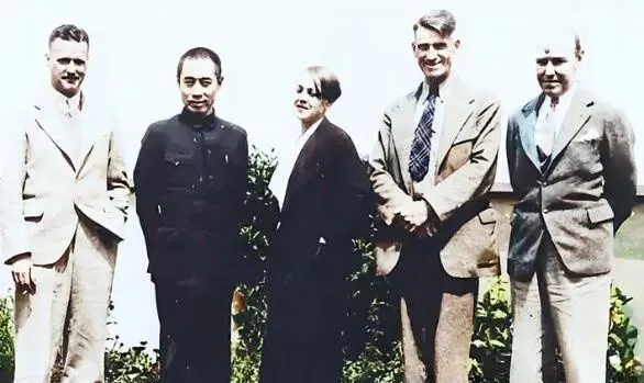 这排站得笔直的人叫驻华友人与吾辈的合影,黑呢中山装并着浅色西装,身量高的在边上笑,个子矮的往前挪半步,远处花木淡淡,像一层雾把边界擦掉了。