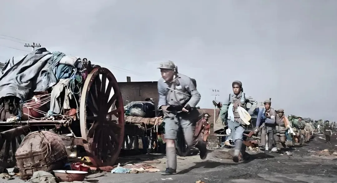 这个扬起黑土的画面叫追击,木辘轳大车还没来得及卸,辎重散成一片,战士们提着枪迈大步,鞋底粘着泥,脸上的汗却被风一吹就干了。
