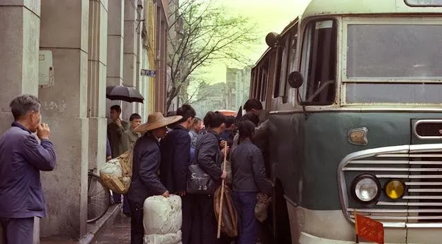 这辆老长途大巴圆鼻子大灯,大行李包往车顶上递,售票员挂着挎包喊着别挤,先上后排,脚踏板被鞋底踩得铮亮,爸妈带我回老家就是这趟车,半路在服务站买一袋桔子,车里一会儿就满是味儿,晕车的孩子靠在大人肩上打盹。