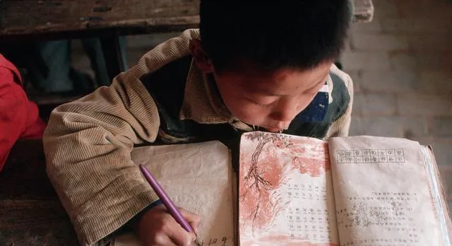 这个小男孩用的本子边角起毛,铅笔头切得尖尖的,木桌面有墨点子,有人刻了小字,他低着头一笔一划,老师从走道里走过,粉笔味混着煤炉味,静得只听见翻页声和鞋底摩擦地面的沙沙声。