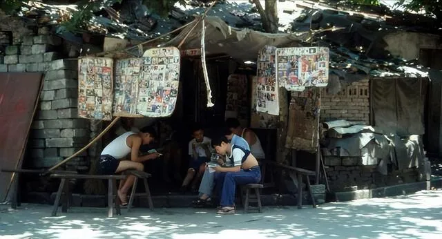 这叫小人书摊,竹竿撑着破布凉棚,绳子上夹的小画页一溜排开,长凳子坐满了人,摊主手里拿着号牌慢慢点,谁借谁还记得清清楚楚,我攒了两毛钱能看四本,最爱黑猫警长,看到断章处就被赶回家,心里痒了两天。