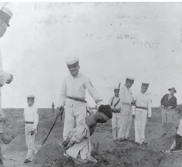 这张老照片里的人被押在土坑边,刀光冷得发白,这种旧时军法处决的画面,看一眼心口就紧,历史书上两行字翻过去快,像这样真摆在眼前,才知道风沙里站久了人会抖,谁都不愿见到的事,偏偏留在底片里。