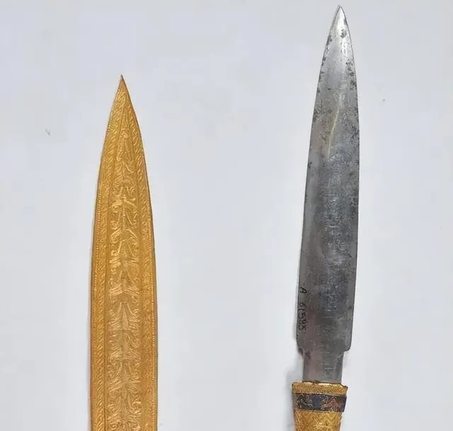 这对刀子一金一银,金的纹路密得像水波,银的刃口被磨得发青,柄上缠着细线,捏上去不打滑,匠人的手艺都在细处,爷爷指着说看这缩颈与收锋,火候要正,晚清打铁铺的火把脸都烤红了,人却乐在其中。