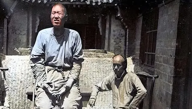 这位高个子是个壮汉,坐在門道边一笑就露出大白牙,旁边朋友个头一比更显高,袖口卷到肘上,衫子被汗水贴了形,爷爷说那时人讲究能吃能干,谁个头立得住,抬石磨、掮麻袋都抢着找他,工钱也硬气。