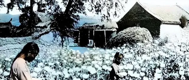 这张看着像水墨,房舍低矮,树影把院墙切成几段,田里人影弯着腰,风从麦梢过去,白花一层层压过来,那时候没有手机,天一亮下地,日头一偏回家,锅灶里咕嘟一响,院里坐着的人不着急,话题从种子聊到秋风,慢慢地就把一年过完了。