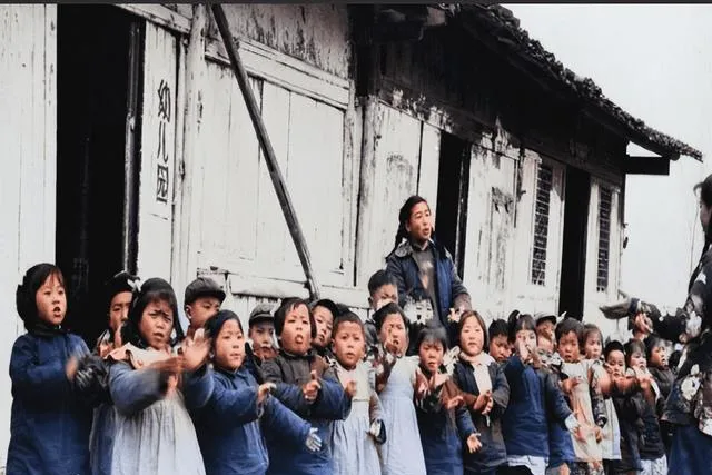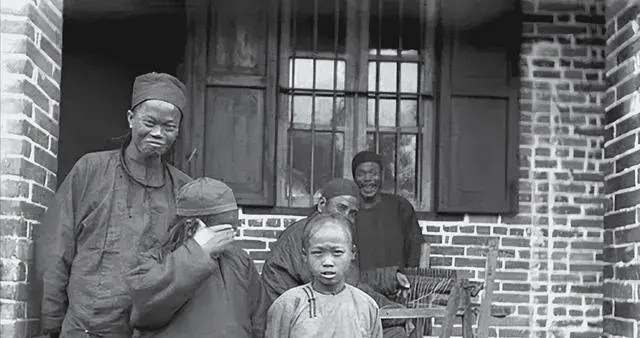 这家子门前站着几个人,砖墙窗框厚实,里头却穷,图里这叫寒门合影,小孩抿着嘴,男人的眼角吊着疲倦,奶奶说那时候日子紧,照相还得攒几个月钱,照都照了也不敢笑咯,怕浪费力气,现在手机一抬就是连拍,珍惜两个字在底片时代更重。