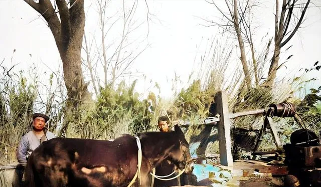 这张是牲畜拉的辘轳井,木轴子吱呀转一圈,水桶下去又上来,男人扶着缰绳不急不慢,夏天我爱凑过去洗把脸,凉得牙根都打颤,现在拧龙头就有水,省力是省力,水的味道却好像淡了些。