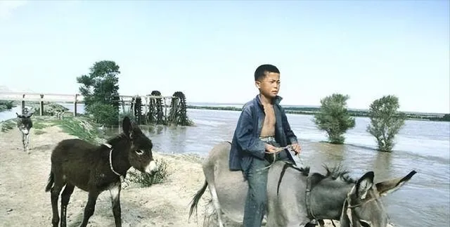 这个场景是放驴赶河沿,缰绳细细勒在掌心,屁股后头还跟着一头小毛驴,水汽往脸上扑,男孩不吭声,驴耳朵前后抖一下就知道路往哪边拐,爷爷说牲口认家,认人也认路,手上别抽它,轻声一咳它就明白,现在车声大路也直,谁还会用草料把口袋塞鼓,秋天一到,驴毛亮得跟刷了油似的。