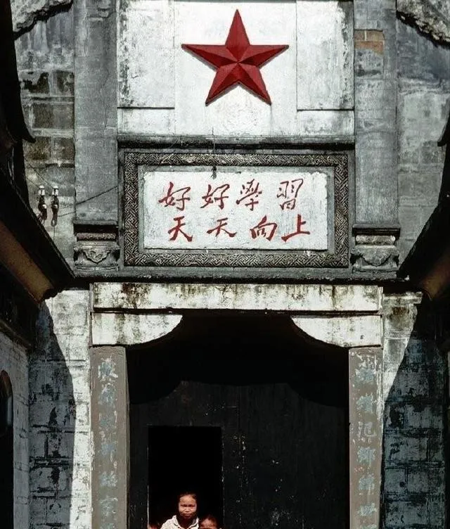 这口门楼上嵌着红星,横匾写着“好好学习,天天向上”,石灰墙起皮,门洞里站俩孩子望外看,早晨过门槛要收小肚子,怕班主任在门里瞄到,铃一响撒腿跑,泥点子从鞋后跟崩出去。