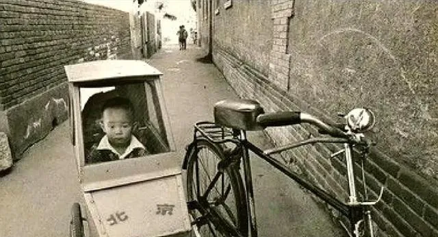 这小木箱叫自制童车厢,钉在二八大杠的车叉上,正脸一块玻璃,边上破纱线粘得歪歪,孩子坐里头两手扶着,爸爸一脚一脚踩着,胡同口一拐风把箱子顶得紧,铃铛“叮”的一声,头也不回就过去了。