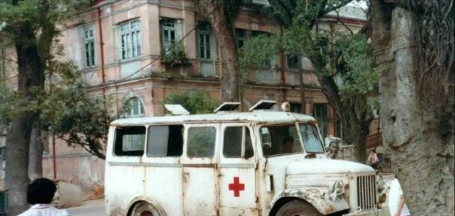 这台带红十字的老救护车,车皮斑驳,窗角锈得掉渣,副驾位上放着手摇铃,护士一拉“当啷当啷”,转向灯是手动的小旗子伸出来,爷爷笑说那车核载二点五吨,别看老,真要跑起来也不含糊。