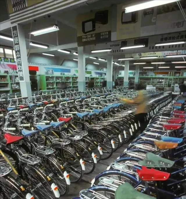 这屋子是百货里的车行,一排排二八大杠排得齐齐,蓝座红座一色新漆,柜台后边贴着“群众放心”几个大字,掏票据办手续,钢印往梁上咚咚一戳,拿回家得给大门口摆半天,左邻右舍围上来摸把套,看车铃,啧啧两声才散。