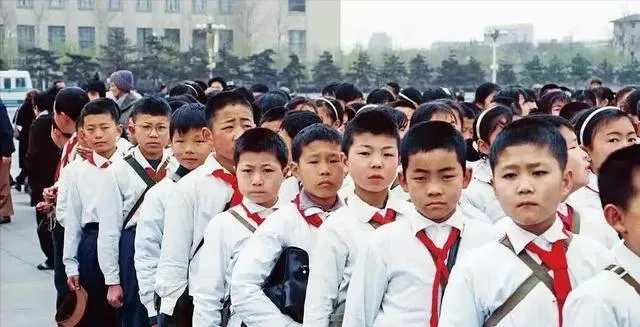 这里是少先队列队,白衬衫红领巾,裤脚熨得笔挺,手里还夹着作文本,队长一声口令,大家眼神往前一看,整齐就这么来,春游合影站定三秒,咔嚓一声留住了整个年级的眉眼。
