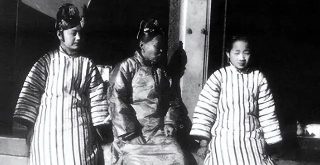 这三位坐在门槛上的叫老中青三代宫女,条纹棉袍厚实,袖口宽,阳光斜着打在脸上,左边那位神情有点倔,像是说话不拐弯的脾气,中间坐的年岁大了,身子沉,右边的还嫩,望着前头发呆,我妈看见这张图说人哪,到哪个年纪坐姿就变,年轻时爱往前探,年纪大了就往后靠。