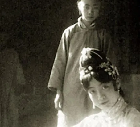 这位正襟危坐的是高等大宫女留影,头上钿花真不少,鬓边压着亮片,眉梢挑得高,身后站着的小丫头眼神怯怯的,光从窗缝里斜着打过来,脸上一半亮一半暗,像日子本身,那个年代照相不常见,能坐在前头的,手里多半有活路和门路。