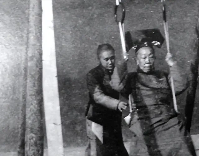 图中这排穿袍戴花的叫后宫合影,站位里前后有序,前排抱着扇子的人多,扇骨细密,头上大簪子压得稳,额前没什么笑,衣色偏素,边沿的滚边却做得细,老照片里看不见戏里那种油光水滑,反倒是风吹过门槛石时起的灰尘能想象出来,奶奶看过类似的影像说别看她们坐着不动,心里都有数,谁管谁,谁听谁。