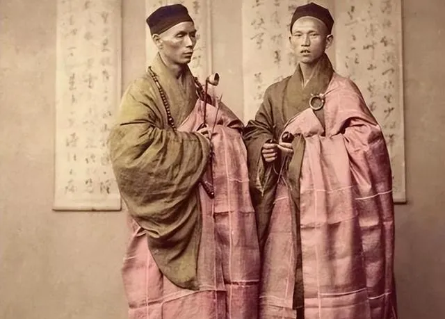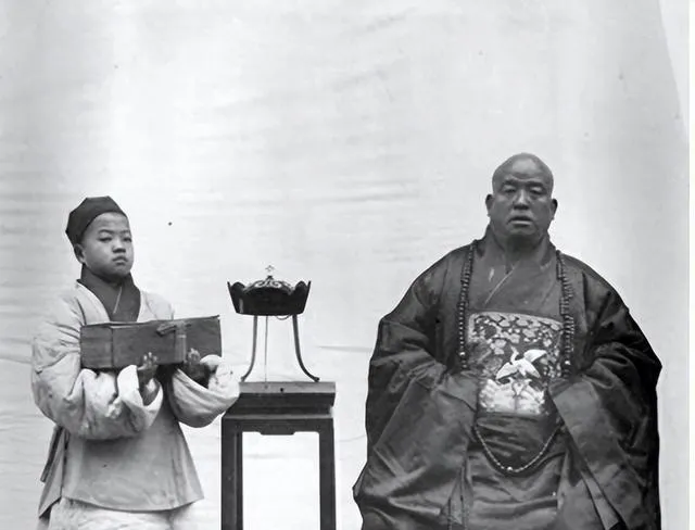 一组清朝和尚老照片:图三是弘一法师,图六和尚身穿官服。