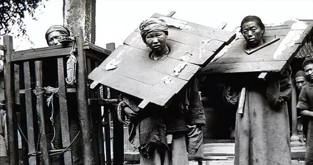 这个沉重的木板叫枷锁,两肩压着,脖子卡在洞里,人被迫低头,旁边立着木笼,木筋子扎得密,街口看热闹的不少,谁也不吭声,历史里的冷硬东西,隔着照片也能打在背上,这会儿我们说起规矩多靠法律,板子这种东西成了博物馆里的陈列。